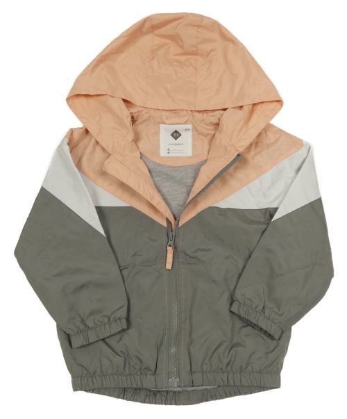 Šedo-bílo-meruňková šusťáková jarní bunda s kapucí