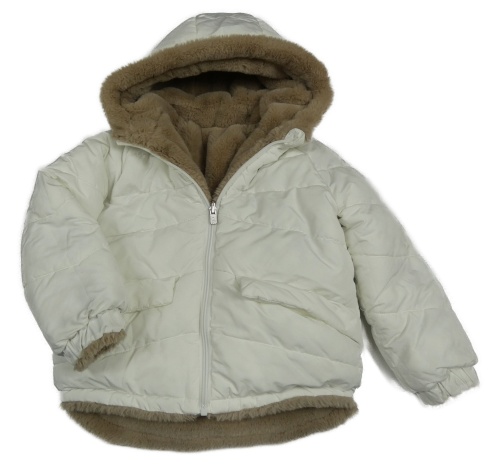 Bílá šusťáková zimní oboustranná bunda s kapucí Okaidi