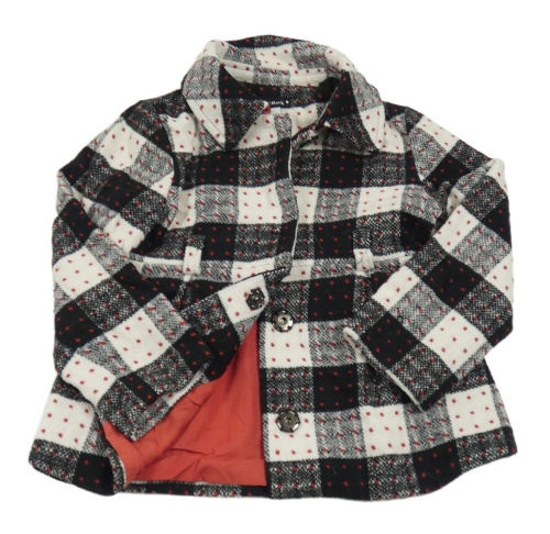 Černo-smetanový kostkovaný vlněný podšitý kabát