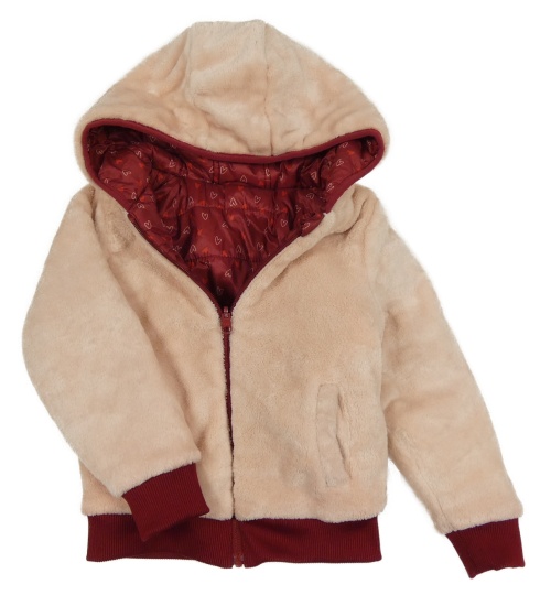 Rubínová šusťáková oboustranná zateplená bunda se srdíčky a kapucí Lupilu