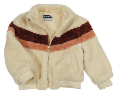Smetanová huňatá podšitá bunda s růžovými pruhy kiabi