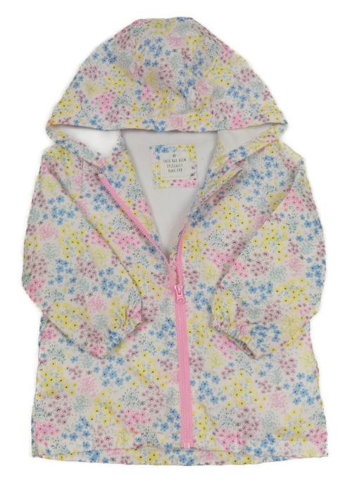 Bílo-barevná květovaná šusťáková lehce zateplená bunda s kapucí Matalan