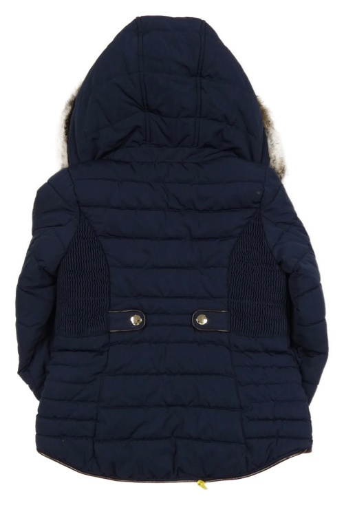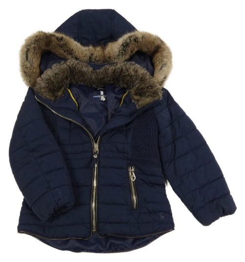 Tmavomodrá šusťáková zimní bunda s kapucí s kožešinou Joules