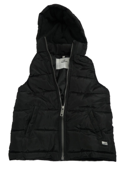 Černá šusťáková prošívaná zateplená vesta s kapucí Topolino