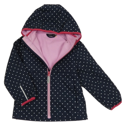 Tmavomodro-růžová softshellová bunda s puntíky a kapucí Name it