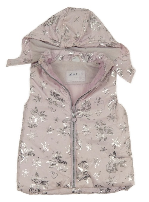 Světlerůžová prošívaná šusťáková zateplená vesta s Elsou a vločkami a kapucí Disney