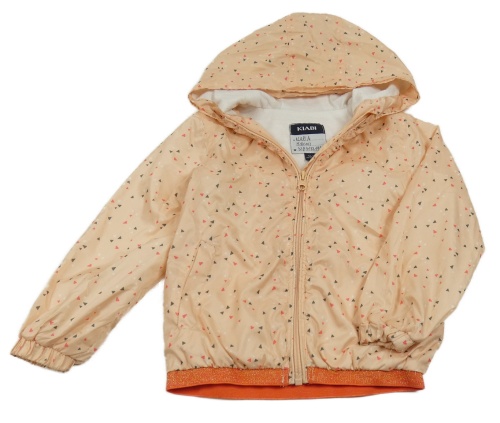 Meruňkovo-jahodová vzorovaná šusťáková jarní bunda s kapucí KIABI