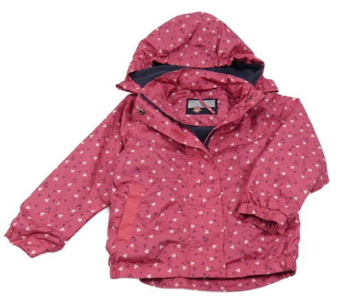 Růžová šusťáková jarní bunda se srdíčky a kapucí
