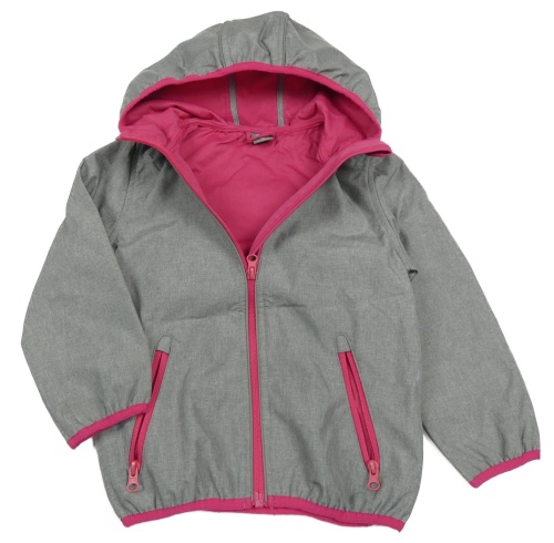Šedá melírovaná softshellová bunda s růžopvými zipy a kapucí Kiki&Koko