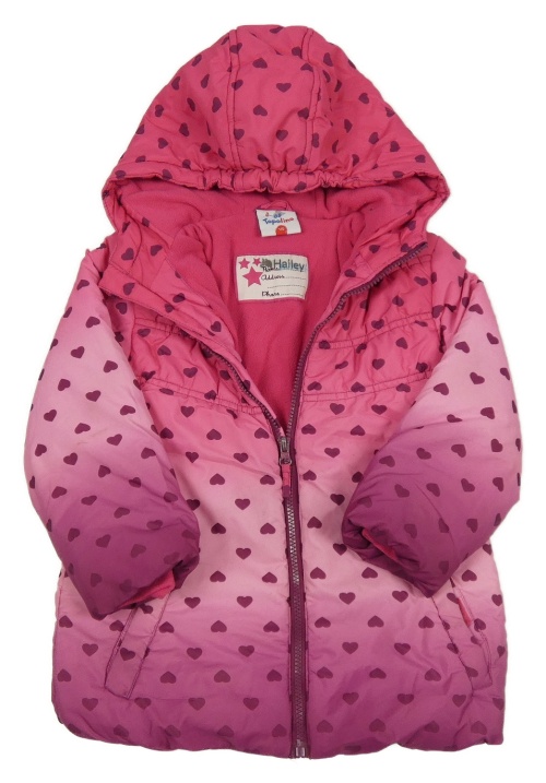 Růžovo-fuchsiová tónovaná srdíčkovaná šusťáková zimní bunda s kapucí Topolino