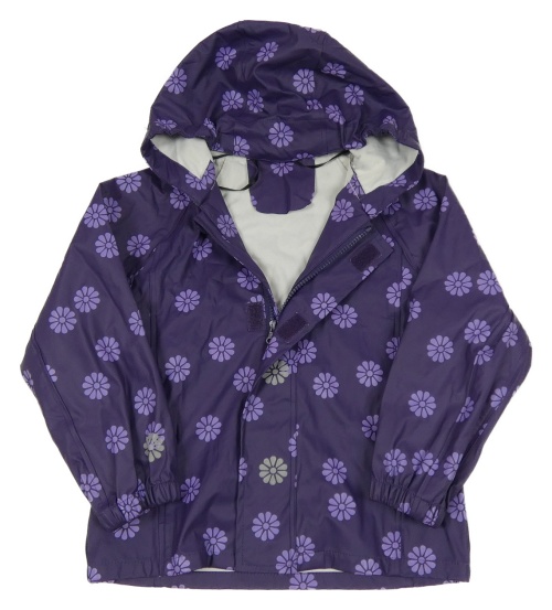 Fialová nepromokavá bunda s kytičkami a kapucí Kids