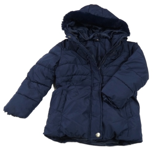 Tmavomodrá šusťáková zateplená bunda s kapucí s kožešinou Kiki&Koko