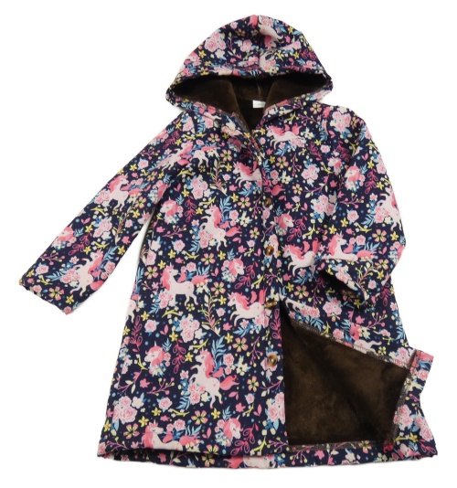 Tmavomodrá květinová zateplená bunda s jednorožci a kapucí