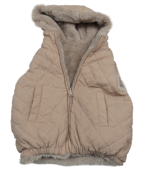 Pudrová šusťáková zateplená oboustranná vesta s kapucí Zara