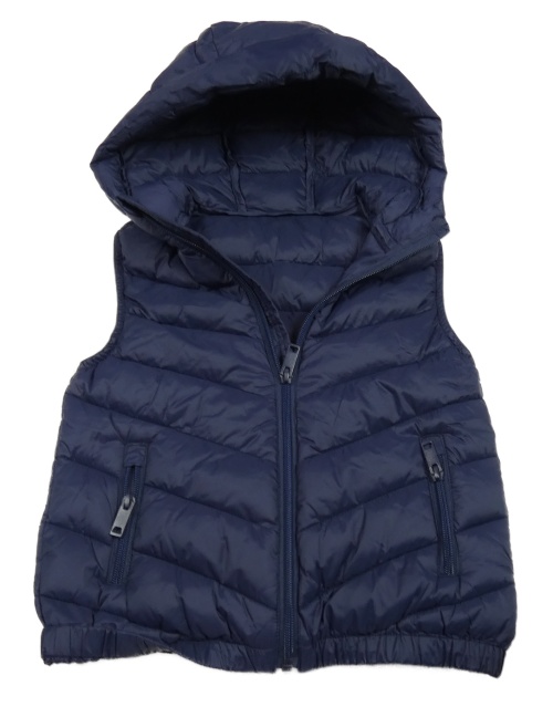 Tmavomodrá prošívaná šusťáková zateplená vesta s kapucí St. Bernard
