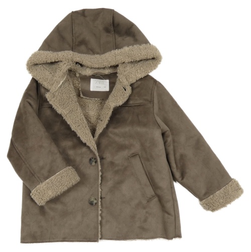 Hnědošedý semišový jarní zateplený kabát s kapucí ZARA