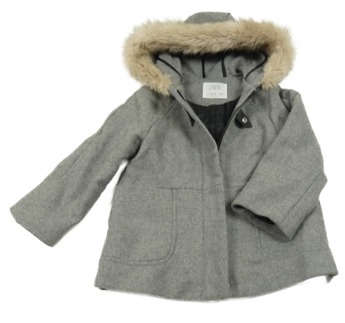 Šedý vlněný lehce zateplený kabát s kapucí Zara