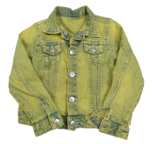 Žluto-modrá plísňová riflová crop bunda s límečkem Denim