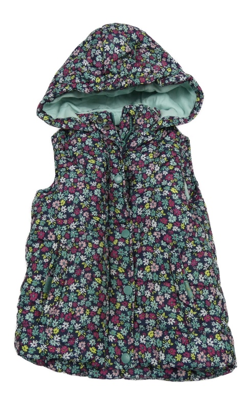 Tmavomodrá kytičkovaná prošívaná šusťáková zateplená vesta s kapucí Topolino