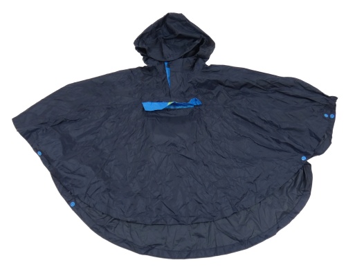 Tmavomodré šusťákové nepromokavé pončo s kapucí Decathlon