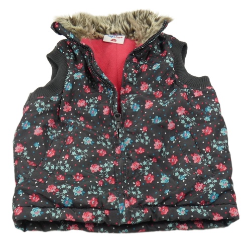 Antracitovo-modro-růžová květovaná šusťáková zateplená vesta Topolino