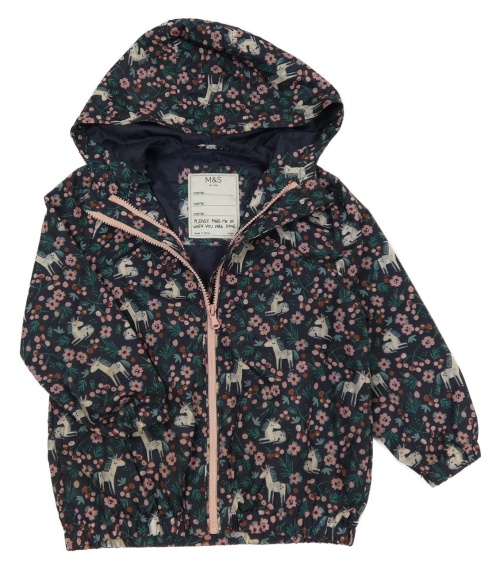 Tmavomodrá šusťáková jarní bunda s jednorožci a kapucí M&S