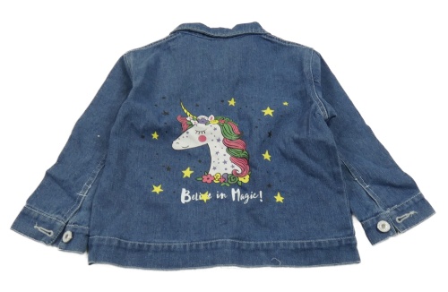 Nové - Tmavomodrá riflová bunda s prošoupáním a jednorožcem
