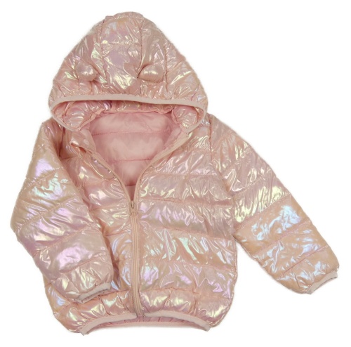 Světlerůžová perleťová šusťáková zateplená prošívaná bunda s kapucí