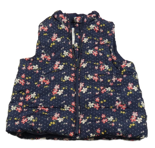 Tmavomodrá puntíkatá šusťáková zateplená vesta s květy GAP