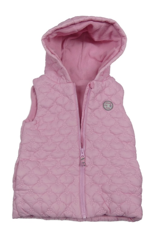 Růžová šusťáková prošívaná zateplená vesta s kapucí Dunnes