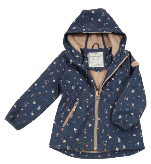 Modrá softshellová bunda s kapucí a srdíčky