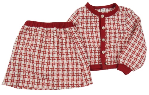 2Set - Bílo-červeno-světlerůžová vzorovaná teplá crop bunda + sukně SHEIN