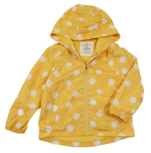 Hořčicovo-bílá puntíkatá šusťáková jarní bunda s kapucí F&F
