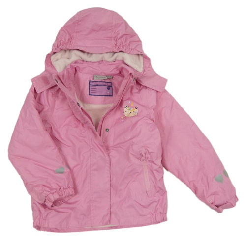 Růžová šusťáková podzimní bunda s kočičkou a odepínací kapucí impidimpi