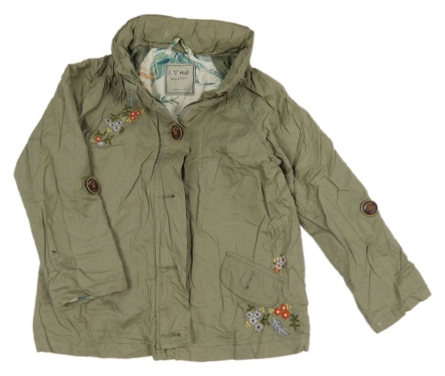 Khaki plátěná podzimní bunda s výšivkami květů a ukrývací kapucí Next