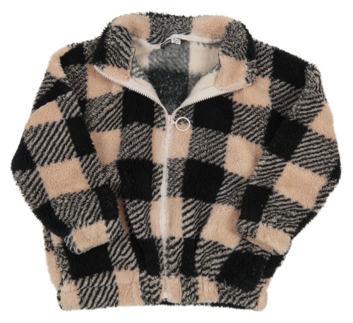 Růžovo-černá kostkovaná huňatá bunda Pep&Co