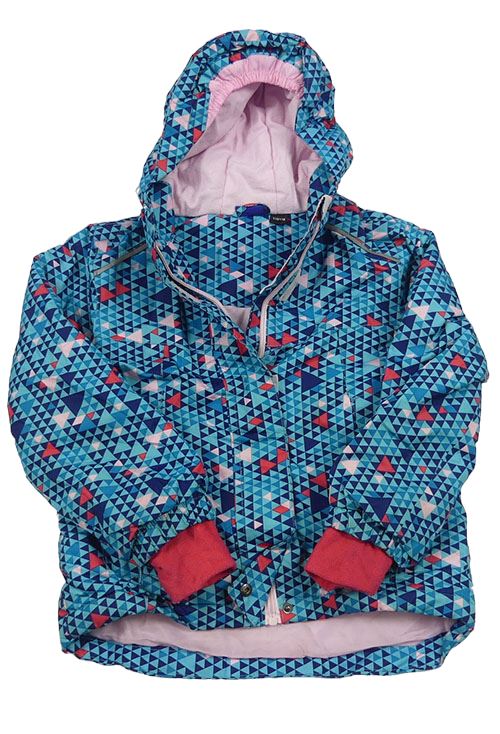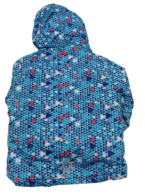Azurovo-tmavomodro-barevná vzorovaná šusťáková zimní lyžařská bunda s kapucí lupilu