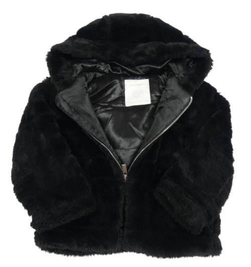 Černá kožešinová zateplená bunda s kapucí Matalan