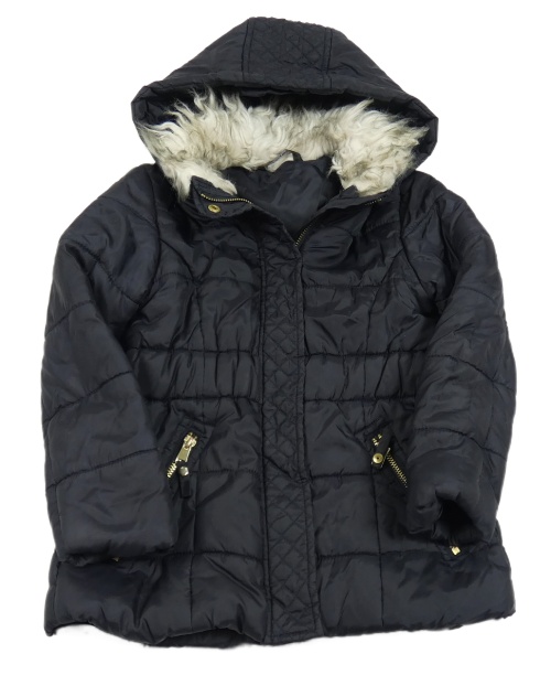 Tmavomodrá šusťáková zimní bunda s kapucí a kožešinovým límcem George