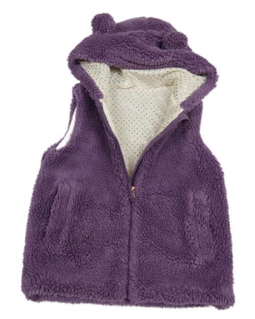 Fialová huňatá zateplená vesta s kapucí Nutmeg