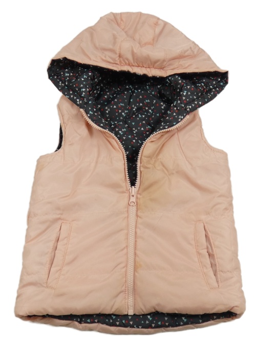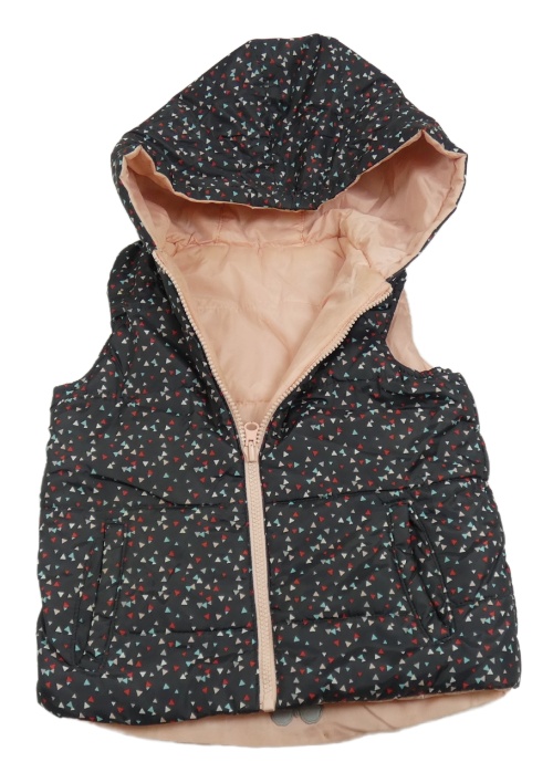 Antracitová vzorovaná šusťáková zateplená oboustranná vesta s kapucí Topolino