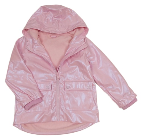 Světlerůžová metalická nepromokavá podzimní bunda s kapucí