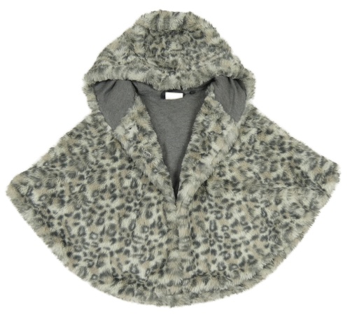 Šedé kožešinové podšité pončo s leopardím vzorem a kapucí Next