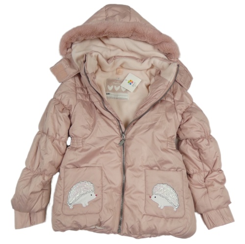 Nové - Světlerůžová šusťáková zimní bunda s ježky a kapucí Topolino