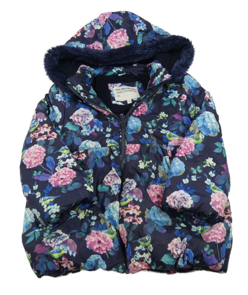 Tmavomodrá květovaná šusťáková zimní bunda s kapucí s kožešinou M&S