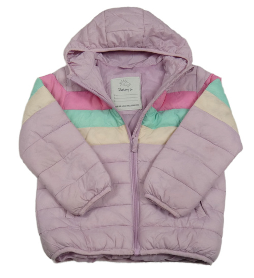 Růžová prošívaná šusťáková zateplená bunda s pruhy a kapucí Tu