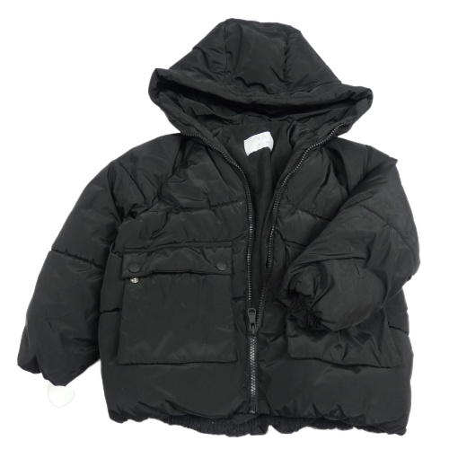 Černá prošívaná šusťáková zimní bunda s kapucí ZARA
