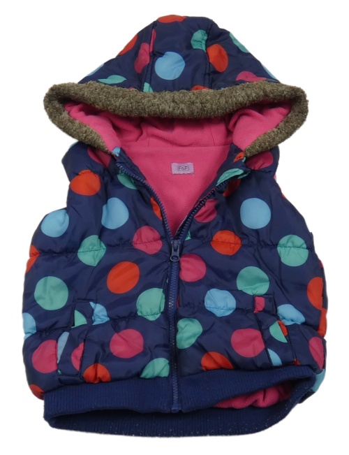 Tmavomodrá puntíkatá šusťáková zateplená vesta s kapucí F&F