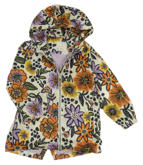 Smetanová šusťáková podzimní parka s květy a lístečky a kapucí Next