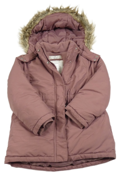 Starorůžová šusťáková zimní bunda s kapucí s kožešinou H&M